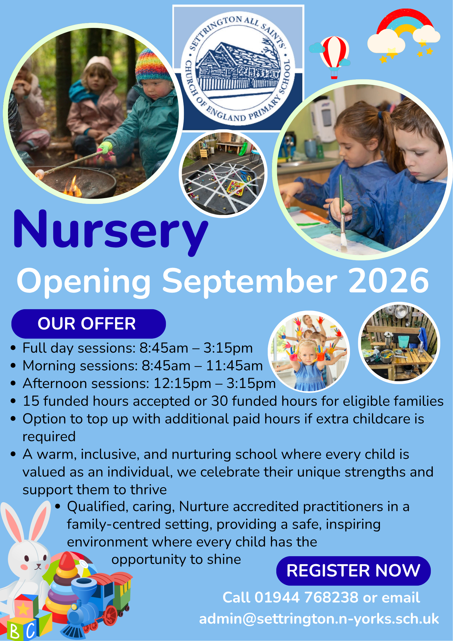 At Settrington, we pride ourselves on being a happy, friendly, and successful school where every child is valued and nurtured. We believe that education is a partnership between school, home, and church and we are committed to working closely with you to support your child’s growth—academically, spiritually, socially and emotionally. Our aim is to nurture thoughtful, caring and responsible individuals who develop a love of learning and a strong foundation of knowledge and skills.