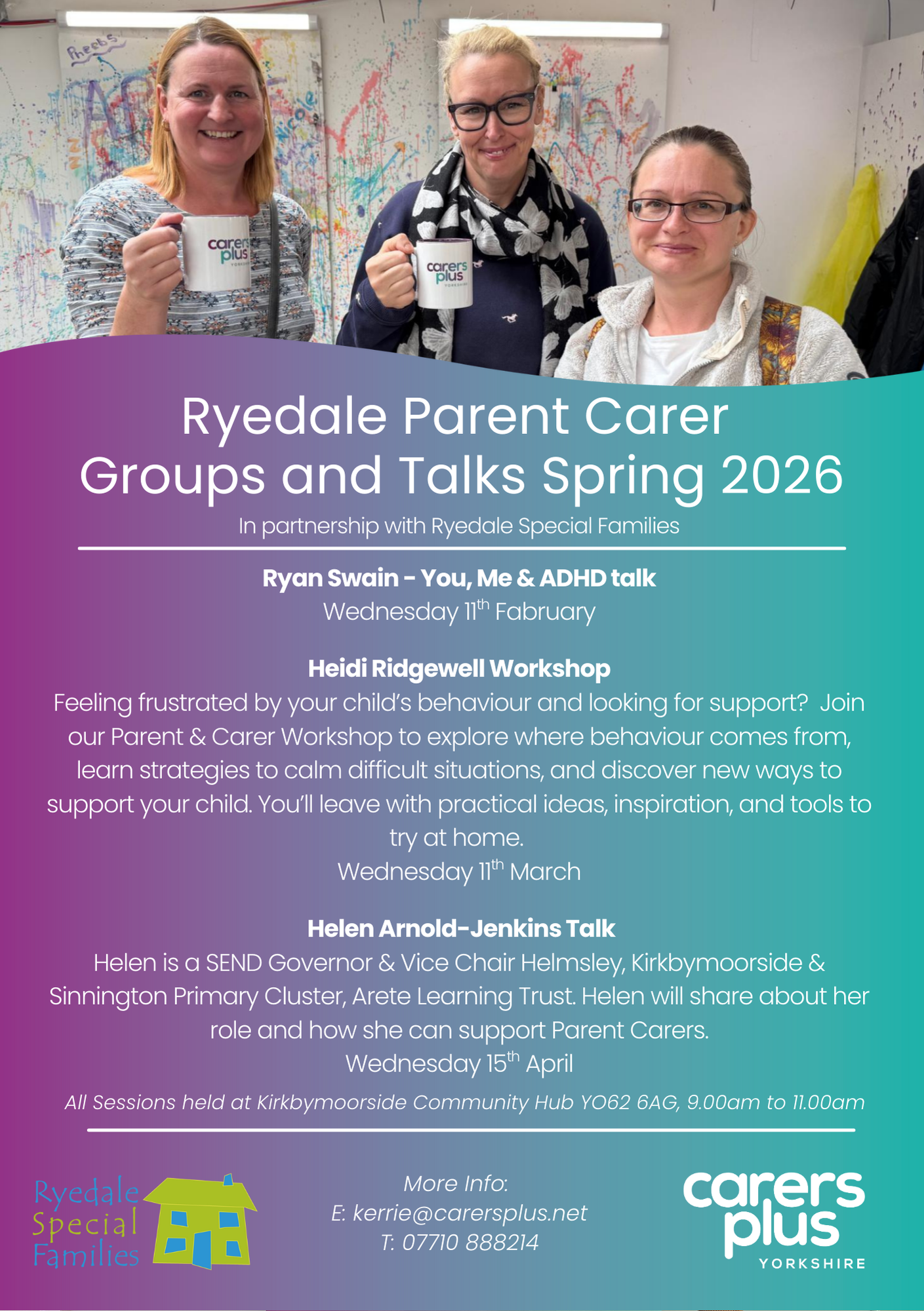 • Ryedale parent, carer groups and talks – please see flyer attached to the email for some free workshops for parents to sign up to join